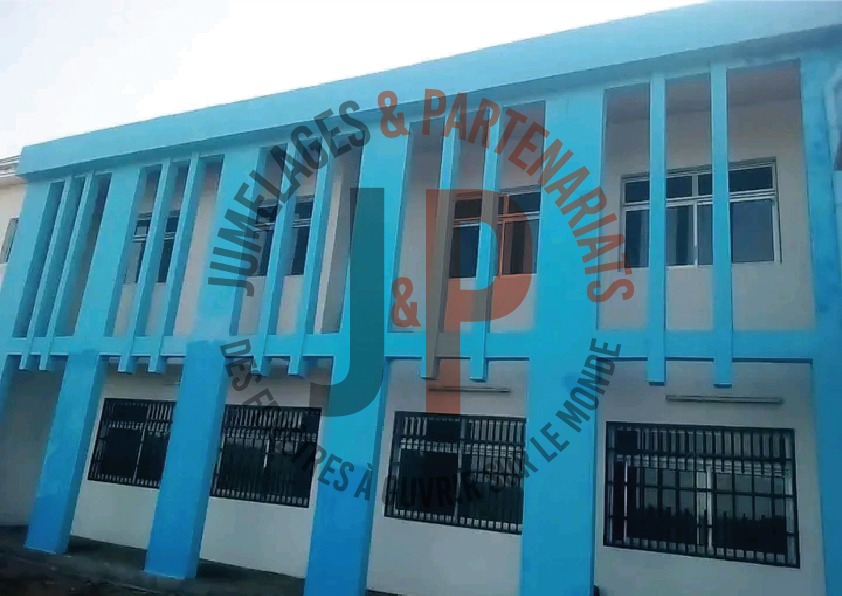 Perché sur la colline de Botoch, le nouvel hôtel de ville de Kiiki impose sa silhouette bleue dans le paysage urbain. Construit sur une superficie d’environ 731,50 m2, ce bâtiment R+1 offre un cadre fonctionnel et structuré pour l’administration municipale.